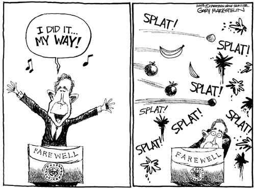 President Bush gave his farewell address last week. Let’s hope he doesn’t give a forwarding address. - Laugh Lines