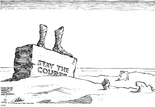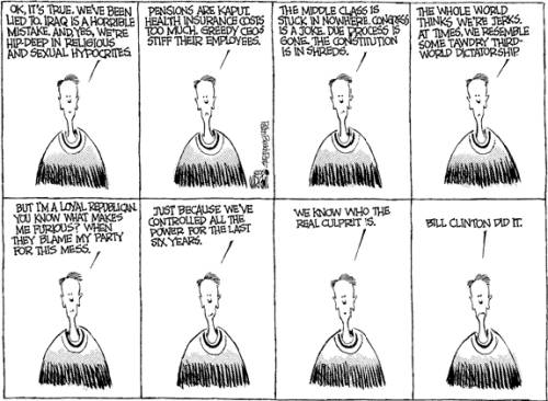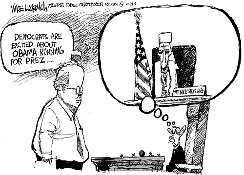 Ya know, the Republicans just might be right: those "weak" Democrats don't even have even a country picked out to invade yet. -- Grant Gerver