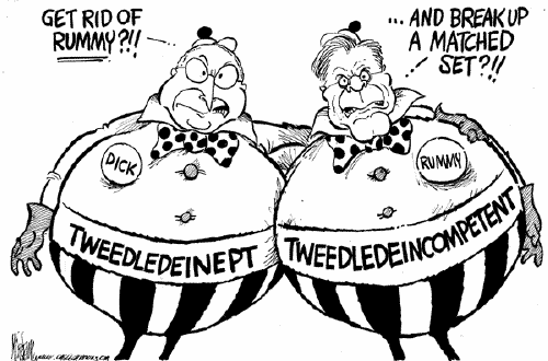 Bob Woodward writes in his new book State of Denial that Don Rumsfeld wouldn't return Condi Rice's calls. He's no fool. Don Rumsfeld didn't make it to the top of three administrations by getting too close to the sheriff's gal. - Argus Hamilton, comedian