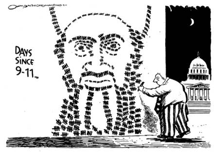 Outgoing Attorney General John Ashcroft discussed plans to further restrict news media access to government records, meetings and other sources of information. He alternately spoke in tongues and sang gospel hymns to deliver his message, however, so those of us in attendance who have not yet been born again had to use translators. The backdrop for Ashcroft’s presentation was a replica of the Venus de Milo, except the statue was missing its breasts instead of its arms.