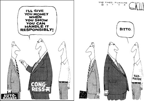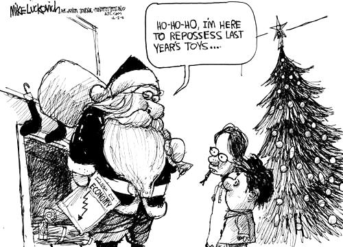 "And this week, they will flip the switch on the White House Christmas tree, which has over 25,000 lights on it, one light for every CEO that's looking for a bailout." --Jay Leno