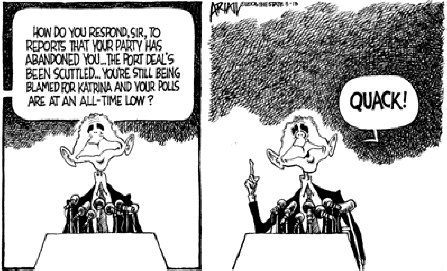 “Dubai announced they will sell ownership of the six American ports to another investor. The bad news, it's Iran.” -- Jay Leno