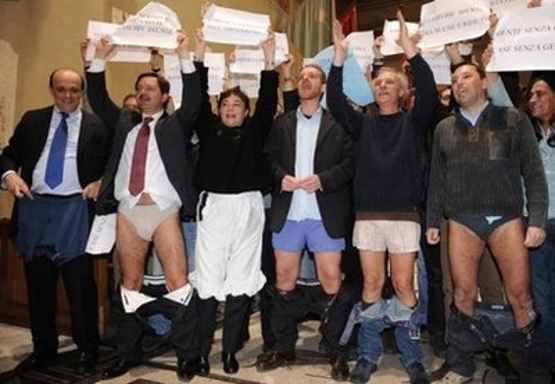 Rome's city hall. "Alemanno has reduced us to our underwear," read one