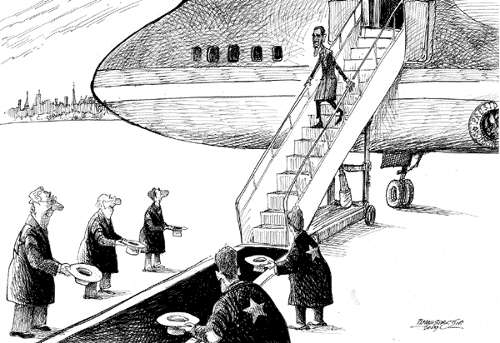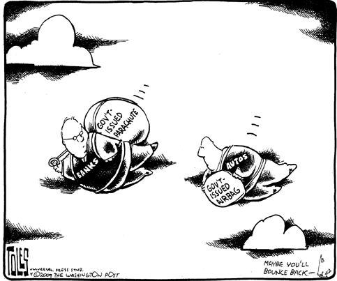 You know the big story yesterday? President Obama, he goes to the G.M. people and he says, “All right, look, guys, do you want any more dough? You’re going to have to get rid of your C.E.O., that Rick Wagoner. Tell him to take a hike and literally take a hike because he’s not getting a car out of here.” So he’s gone. So he gets dumped. In addition to getting dumped, he receives a $20 million bonus to resign. Let that be a lesson to you other two big carmaker heads.- David Letterman