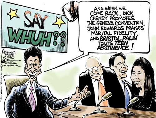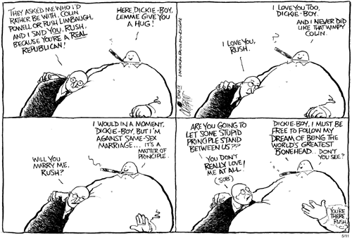 core principles: gay bashing, war profiteering and torture." --Bill Maher