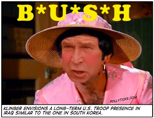 Friends of his from Texas were shocked recently to find him nearly wild-eyed, thumping himself on the chest three times while he repeated "I am the president!" He also made it clear he was setting Iraq up so his successor could not get out of "our country's destiny."