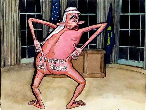"And more problems for al-Zarqawi. You know how they believe when you get to heaven, you get 72 virgins? Turns out, now you wind up in hell with 72 year-old virgins." --Jay Leno