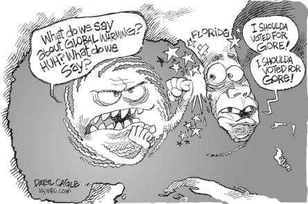 "It is now generally recognized that while Al Gore and I were ridiculed, we were right about global warming," Clinton said at a fundraiser for the Florida Democratic Party. "It's a serious problem. It's going to lead to more hurricanes."