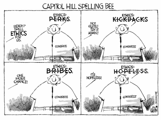 "Former House leader Tom DeLay officially left Congress this week. He stepped down. He said he's leaving Congress with no regrets, no shame and no ethics."