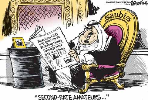 Saudi Arabia agreed to increase its crude oil drilling Monday. High oil prices are destabilizing the world. When newspapers said Sunday gasoline prices in Iran are forty cents a gallon, Americans no longer wanted to invade Iran, they wanted to defect.- Argus Hamilton
