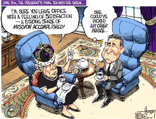 "President Bush said that, after he retires, he wants to write a book. ... Bush said, he's not sure if it will be about politics or about his personal life, but he is sure it will be a pop-up book." --Conan O'Brien