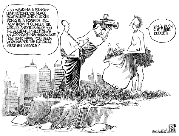 Talk about bad luck: Bush transplanted American democracy into the Middle East and it's being rejected like a cartoon of the Prophet Mohammed. - Grant Gerver, www.seriouskidding.com