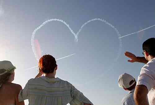 Make love, not war. The British Royal Air Force aerobatic team, the Red Arrows, treats people to a heartfelt creation in the sky over Abu Dhabi, United Arab Emirates. The team's 21-minute performance Friday was part of a three-week good will tour of the Far East, Middle East and Europe. Photo/CNN
