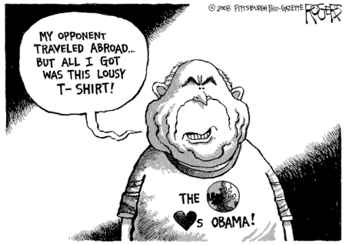 Poor John McCain, the media is so in love — they are all over Barack Obama and McCain can’t get anybody’s attention. Did you see what McCain did today? He kept getting in and out of his limo, with no underwear on. - Jay Leno
