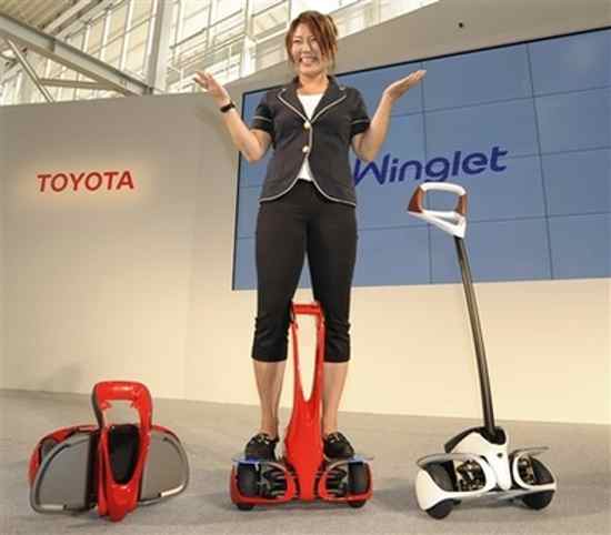 Toyota Motor Corp.'s new motorized ride 'Winglet' during a press conference in
