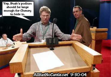 "Everyone is talking about the ground rules. Kerry wants his podium to be tall enough so he can rest his hands. And President Bush wants it to be wide enough to hide Dick Cheney." -- Conan O'Brien