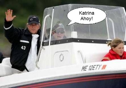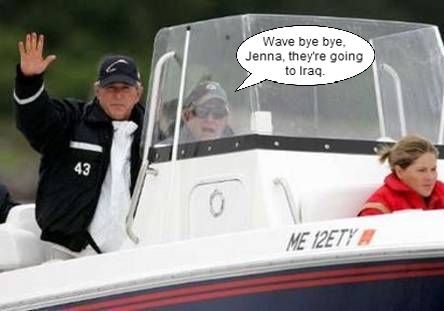 The Decider-in-Chief waves urgently to Coast Guard escort boat for an extra