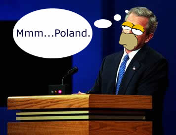 " Bush said he would invade Iraq again, even knowing what he knows now. How can anyone be that stupid? When a kid bangs his head against a cement wall once you admire his determination, but when he keeps on doing it you have to accept that he is just not very bright. The president lives in a world of spin, protected from everything and everyone except those who adore him. He is not capable of learning." -- Retired Four-star Gen. Tony McPeak, in a speech to a VFW group, 27 Sep 04