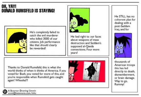 “Why do we soldiers have to dig through local landfills for pieces of scrap metal and compromised ballistic glass to uparmor our vehicles?” -- Army Spc. Thomas Wilson of the 278th Regimental Combat Team asked Donald Rumsfeld followed by applause.