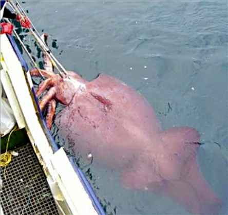 An adult Colossal squid (Mesonychoteuthis hamiltoni) was caught by New Zealand fishermen in deep ocean off Antarctica, February 22, 2007. (Photo/New Zealand Ministry of Fisheries)