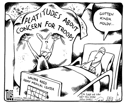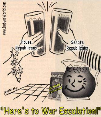 "Things getting very nasty in Washington. Today the White House denied an assertion by Senator Harry Reid that the Iraq war is 'the worst foreign policy mistake in U.S. history.' The White House said, 'You have to realize that President Bush has two more years in office.'" --Conan O'Brien