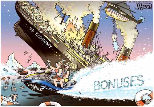 the money to give himself the first huge bonus." --Jay Leno