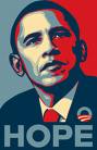 Warholesque red, white and blue and underlined with the caption HOPE....The