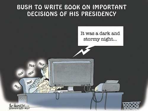 Former President George W. Bush just signed a $7 million book deal, though, reportedly, he thought it was to read one.- Jimmy Fallon