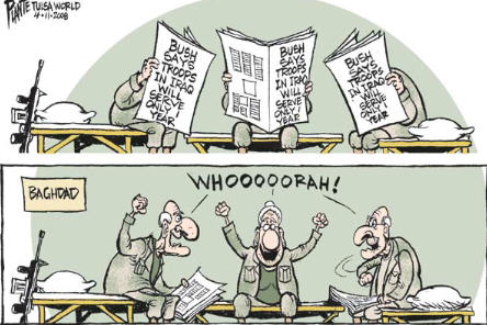 "The number two man in Al Qaeda in iraq, terrorist mastermind Abu al-Masri, is dead. He is dead. He reportedly died of natural causes. Died of natural causes. That's when you know the war has been going on a long time. Okay? When your enemies just start dying of natural causes!" --Jay Leno