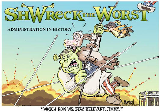 "The Iraq funding bill that set a date for troop withdrawal, that's all gone by the wayside. The Democrats just backed down, as they always do, but they did it with flare this time. They met on an aircraft carrier and they had a big banner that said, 'Mission Abandoned!'" --Bill Maher