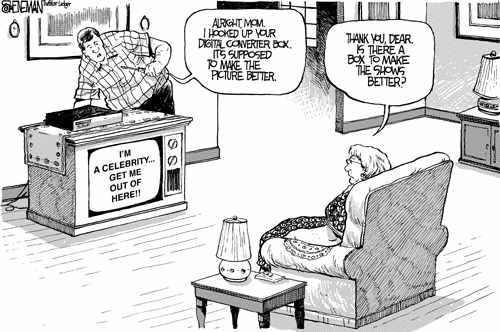 "The big digital changeover. Are you ready for this? Do you know what it means? Nah, I don't either. You gotta change over to a digital thing for your TV and everybody is getting ready down in Washington. Dick Cheney, as a matter of fact, hooked up a converter to his pacemaker." --David Letterman