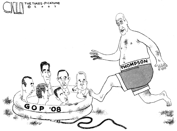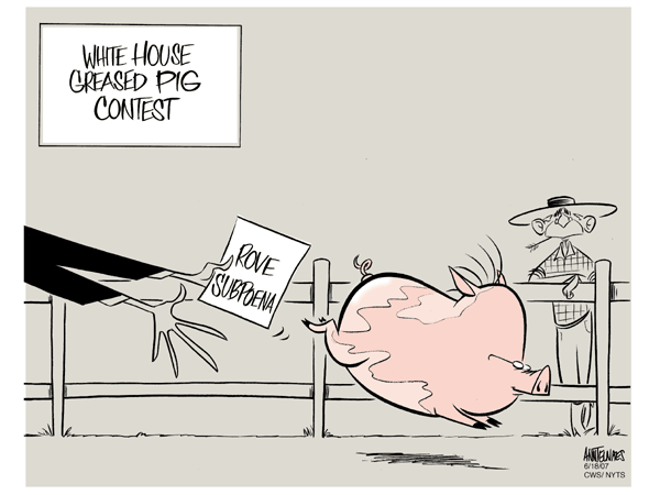 Talk about bad luck: Bush transplanted American democracy into the Middle East and it's being rejected like a cartoon of the Prophet Mohammed. - Grant Gerver, www.seriouskidding.com