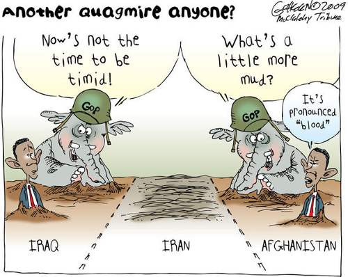 Stephen Colbert on the GOP demand that Obama ratchet up his Iranian rhetoric: "Exactly! Seeing these protesters struggle and not speaking boldly and loudly is like seeing a drowning man and not standing on the shore shouting: 'Hey, look at me! I'm a lifeguard!'"