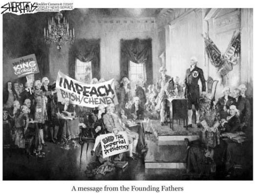 Impeachment is much too kind for the "Compassionate Conservative" traitors who've ruined our Country and the World. I favor disembowelment. - Grant Gerver, www.seriouskidding.com