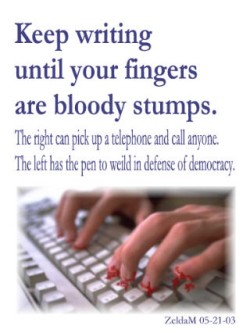 | Dear Readers, There are two scoops today to be shared with everyone you know. The Scoop link is about the voting machines. The Grand Old Party just loves their machines. Buckle your seat belts, you are in for a bumpy ride and you will need a barf bag. This made me sick to my stomach. http://www.scoop.co.nz/mason/stories/HL0307/S00065.htm Inside A U.S. Election Vote Counting Program The next email target is: Write to your friends and include the link to email Dr. Gary Cumberland requesting the Lori Klausutis autopsy report be reopened. Oh and write to news@msnbc.com and request they investigate Dr. Michael Berkland of Ft. Walton Beach, FL and while they are in the neighborhood, they could talk to Dr. Gary Cumberland of Pensacola, FL. Dr. Michael Berkland has been dismissed by the Medical Examiner's Office in Pensacola. The Florida Medical Examiner's Commission had complained of his failure to complete dozens of autopsy reports in 2001 and 2002, a violation of state statutes. Berkland says he performed some 320 autopsies last year and had, in the past, asked for help from the Pensacola office to handle the workload. Chief Area Medical Examiner Dr. Gary Cumberland will temporarily take over Berkland's duties. *********************** http://www.nwfdailynews.com/archive/news/01/010901news3.html Northwest Florida Daily News</A> "There is no doubt that the head injury is a result of a fall rather than a blow being delivered to the head by a moving object," Berkland wrote in the report on the death of Lori Klausutis ************************* Zelda Morgan - Mercenary Journalist for AHNC |