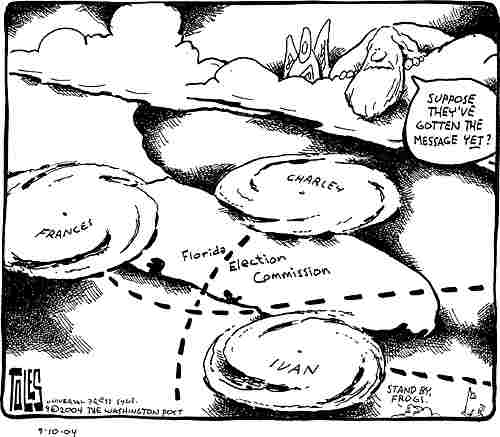"President Bush toured the hurricane damage in Florida. He looked really surprised to see places boarded up for reasons other than his economic policies." -- Jay Leno
