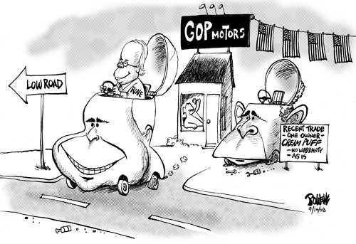 I'm glad you don't portray Sarah Palin as a dumb woman in over her head. I loved the toon you did Do you know the difference between Sarah Palin and Dick Cheney? It showed she is comparable to being as tenacious as Cheney. You used fear in the right way.lol