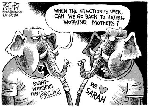 The bottom line is the media is misogynistic. Hell, so is most of America. The media beat Hillary up about her hair, her clothes, her voice, her laugh and the vast majority of US editorial cartoonists (99% male) loved to work the words bitch, shrill, witch, fish wife into their sexist Hillary cartoons. I know, I look at editorial cartoons daily for this website and was disgusted how Hillary was and still is portrayed. And now, the Republicans are whining how sexist the media is towards Sarah Palin??