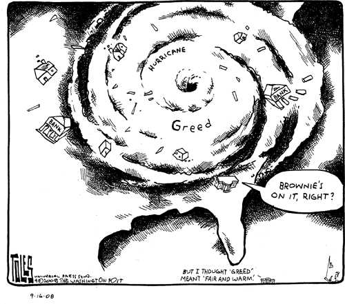 The biggest seller this fall in Manhattan will be steel umbrellas, to protect you from bankers jumping out windows. - LaughLines
