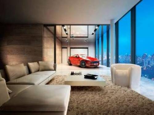 A handout picture released in Singapore on September 14, 2007, shows an artist's conception of an apartment with space for a luxury car inside it. Worried your top-of-the range auto might get scratched in the car park? Then buy a luxury high-rise apartment that has its own auto-size lift to bring your car up into the living room. At least that's one solution on offer from the latest entrant to Singapore's burgeoning luxury home property market, hoping to lure the international jet-set to buy its projects. Photo/Hayden Properties