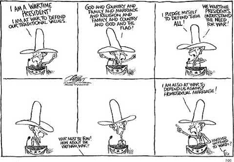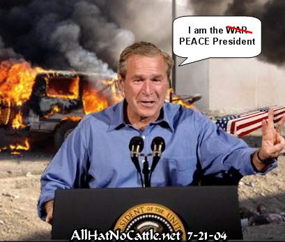 Gentler Bush pushes 'peace' presidency Chicago Sun Times, IL - 7-21-04 BY DEB RIECHMANN. CEDAR RAPIDS, Iowa -- President Bush said Tuesday that the country will be safer if he's re-elected, offering soothing ... |